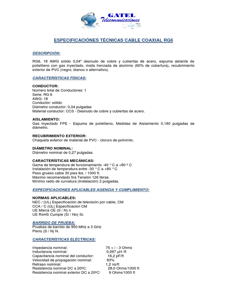 Cable coaxial rg6 caracteristicas.